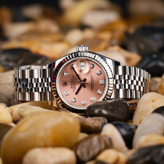 Rolex Date just Ladies Pink Dial Diamond Markers-M279174